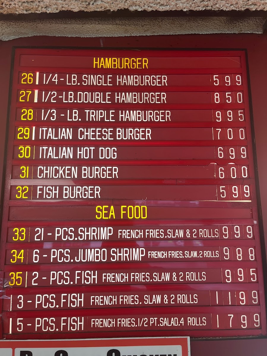 The menu features a delectable range of fried chicken combinations, perfect for families and gatherings, such as the hearty 18-piece box served with salads or family-sized fries. Don’t miss the grill-topped sumptuousness of the Grilled Chicken Salad or the indulgent Italian Cheeseburger, bringing a unique twist to your meal.